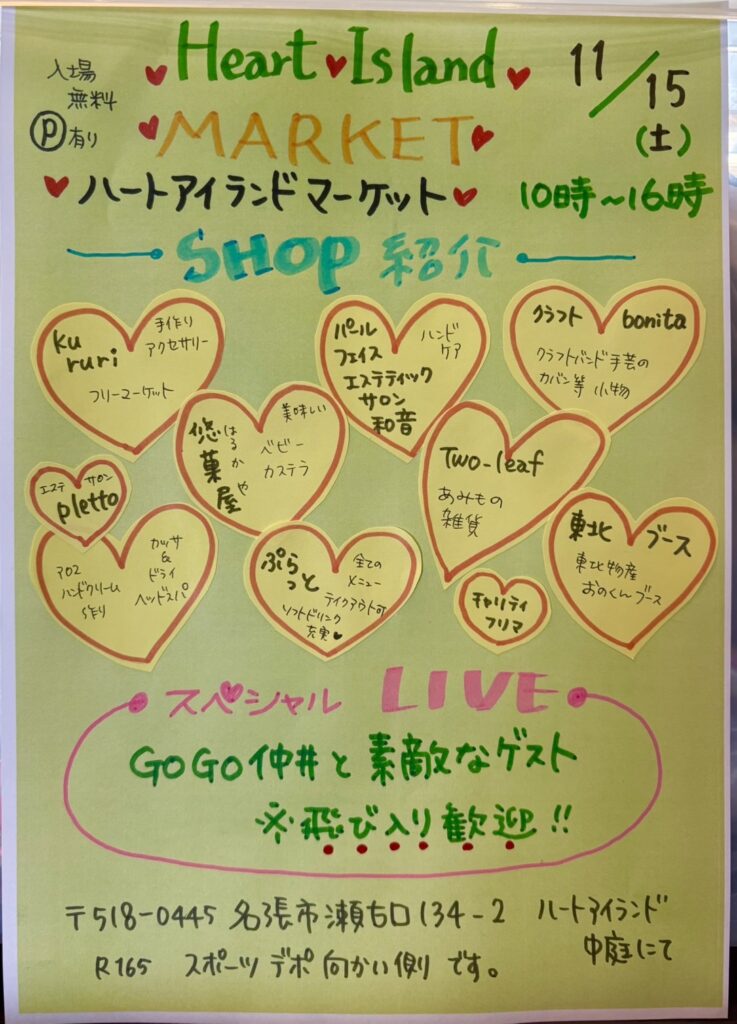 ぜひ、11/15(土)はハートアイランドにお越しください。
